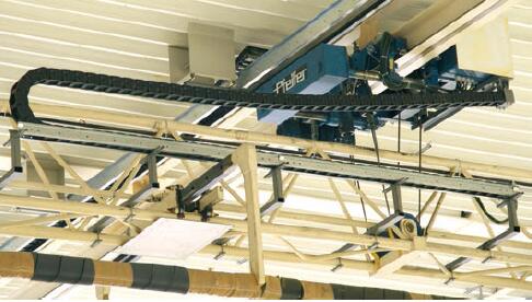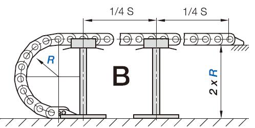 如果在整個行程中拖鏈的上部未接觸下部。這種情況我們稱之為架空。移動端到拖鏈彎曲半徑圓弧的距離稱之為架空長度。架空是最常用的應用。工程拖鏈非常適用高要求長使用壽命的場合。最在架空長度取決于拖鏈或拖管的類型以及內部負載。